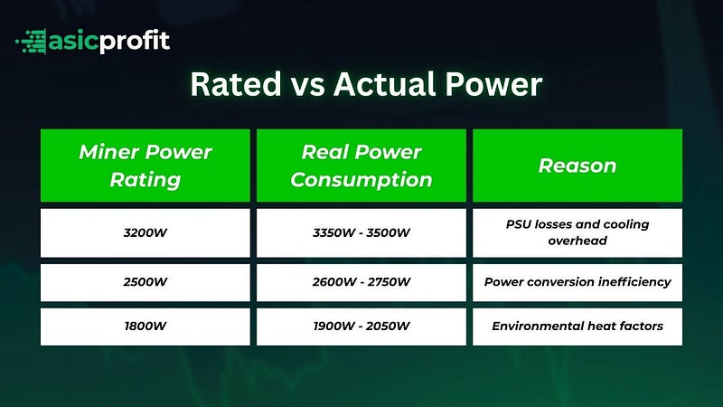 This means that if a miner needs 3000W of power, the wall consumption could actually be closer to 3300W.